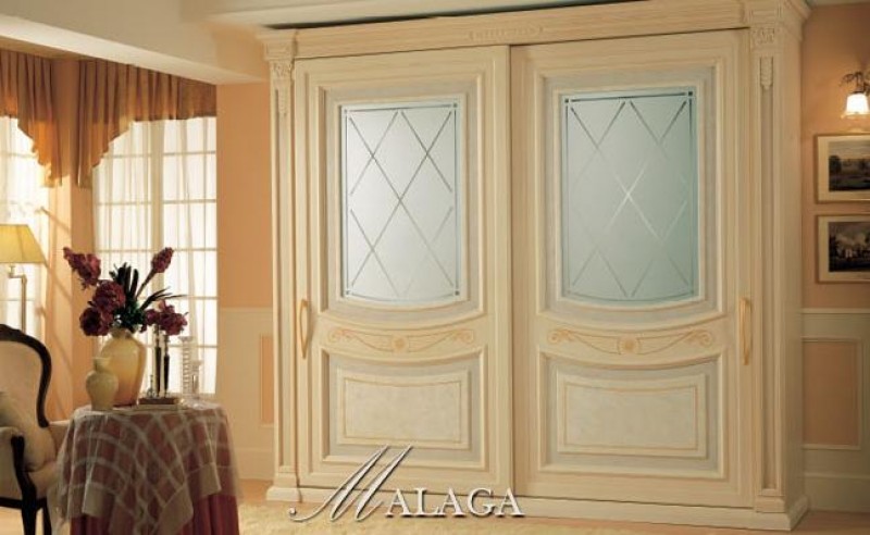 Tamburato con struttura in abete rivestito in mdf impiallacciato noce tanganika, spessore da mm. 38, dotato di bocca di lupo o di tiranti. Pannello esterno in mdf pantografato spessore mm. 8/10