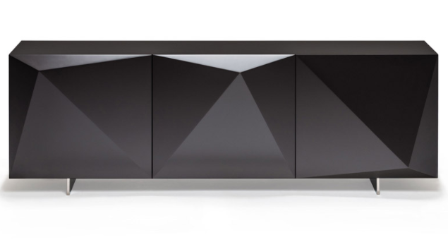 Madia contenitore a due o tre ante in legno laccato bianco lucido (L7), nero lucido (L3), moka lucido (L4), rosso lucido (L8), graphite opaco (OP69) o titanio (M11). Piedini in acciaio inox lucido, verniciati bianco (OP71) o graphite (OP69) opaco. Ripiani interni in cristallo trasparente. Cassetto interno nella versione a 3 ante.