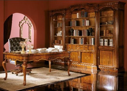 Vedi tutto il brand →Libreria a 4 ante 6 cassetti, 2 porte vetro laterali in noce nazionale massiccio.