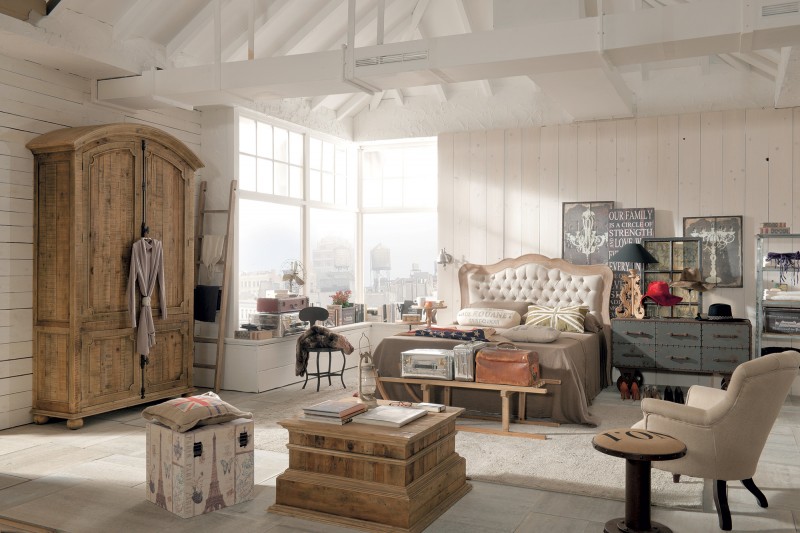 Testiera imbottita con lavorazione capitonné per letto matrimoniale rivestita in lino color ecrù, cornice sagomata in legno di rovere.