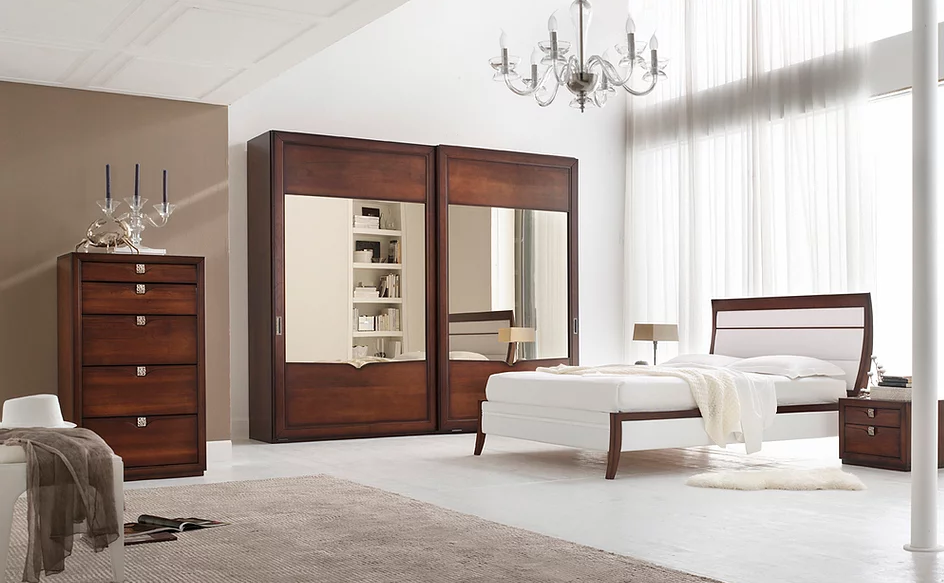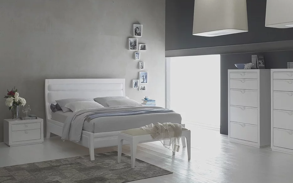 Il romanticismo di un letto imbottito dalle forme morbide e accoglienti e dai contenitori decorati con misura, equilibrio e delicatezza. La pura luminosità del bianco che si apre a liberi accostamenti con il fascino del legno nelle ricercate finiture.
