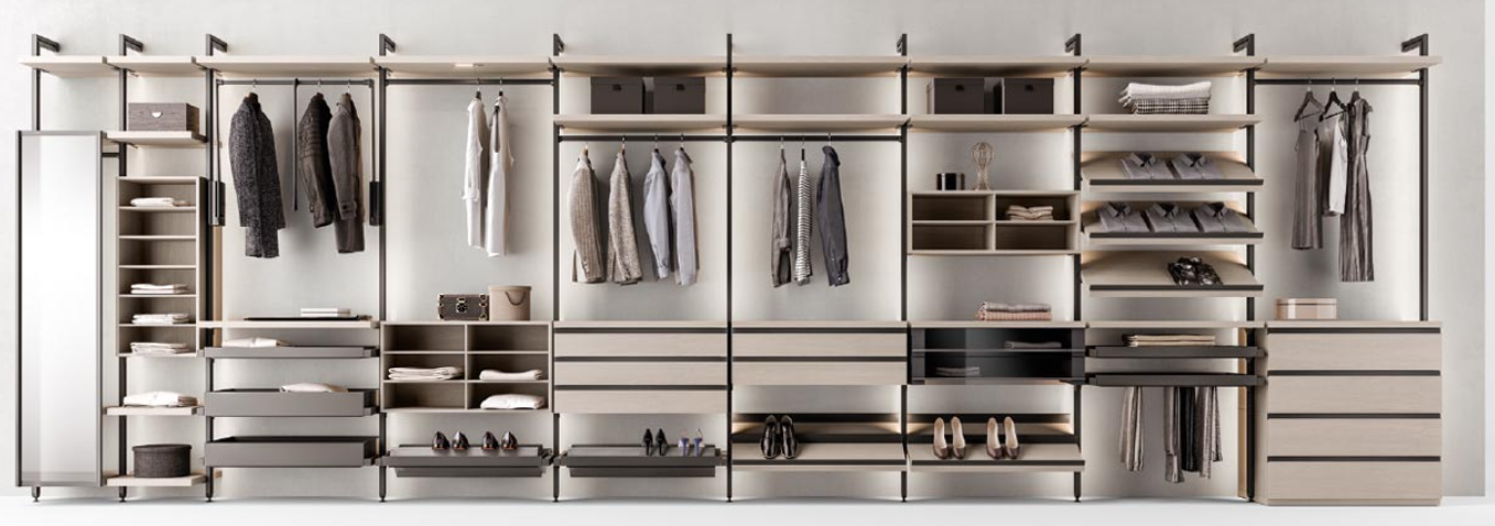 Lâeffetto è quello di una cabina spaziosa e ordinata come quella di una star: un luogo facilmente accessibile, divisa per capi dove collocare indumenti e abiti diversi per ogni occasione. Versatile nel tempo, la si può posizionare anche a centro stanza per dividere lo spazio.