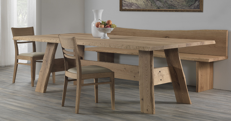 Tavolo massiccio con tavole separate e scoretcciate, fisso.