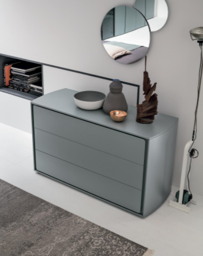 Finiture della foto / Comodino Tivoli in legno rovere carbone. Comò laccato opaco carta da zucchero 155.