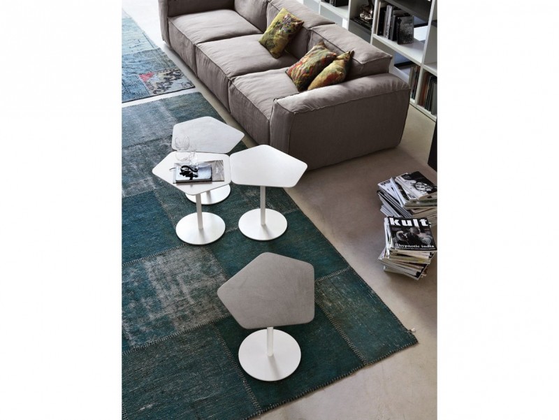 CARUSO L 55 P 45 H 44 cm. Tavolino da salotto. Finiture: Ecomalta, tutti i colori laccati opachi, laccati lucidi e laccati poro aperto. Struttura in metallo verniciato bianco.
