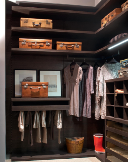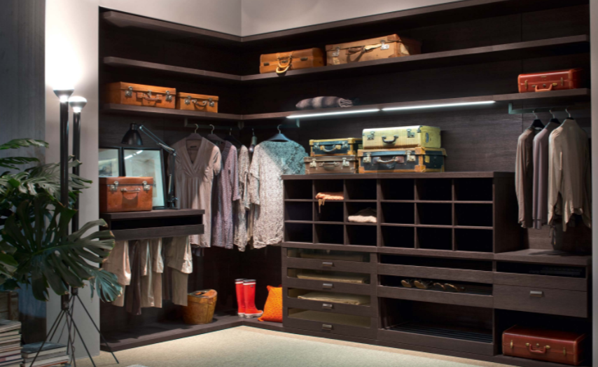 Il sistema âPraticoâ trasforma l'ambiente, dalla boiserie modulata sull'architettura della stanza, alla boiserie attrezzata che organizza lo spazio domestico. Mensole e cassettiere sospese arredano la tua cabina armadio. Spazi liberi da vincoli, liberi di variare in altezza e lunghezza per sfruttare tutto lo spazio disponibile. Finiture della foto / boiserie e attrezzatura in rovere termocotto, maniglia Plana.