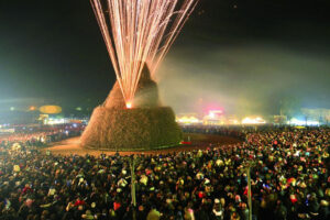 nQuesta grande "costruzione agricola" viene accesa la sera del 16 gennaio con uno spettacolo di fuochi d'artificio. Questo rappresenta il punto di riferimento per gli eventi e le manifestazioni, che durano fino a notte inoltrata.
