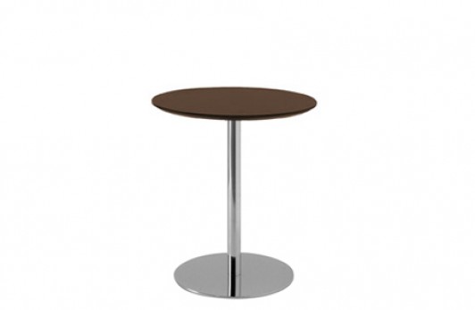 Tavolino con basamento rotondo in metallo e finiture in acciaio satinato o cromato.