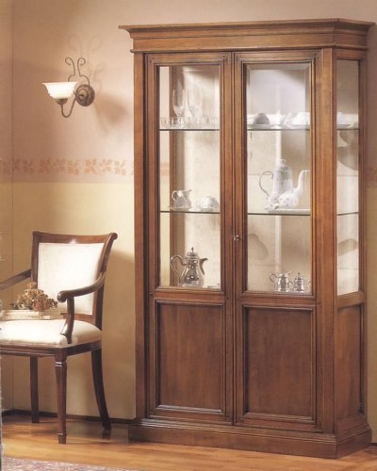Vetrina 2 ante in vetro e legno. Finitura noce.
