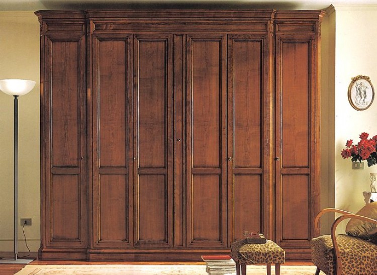 Armadio 6 ante con specchio straibile ed orientabile. Finitura ciliegio.