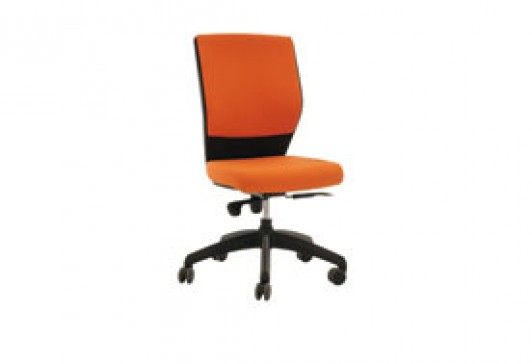 Poltrona da ufficio, con dispositivo di regolazione della seduta e dello schienale. Ruote girevoli autofrenanti in gomma morbida.