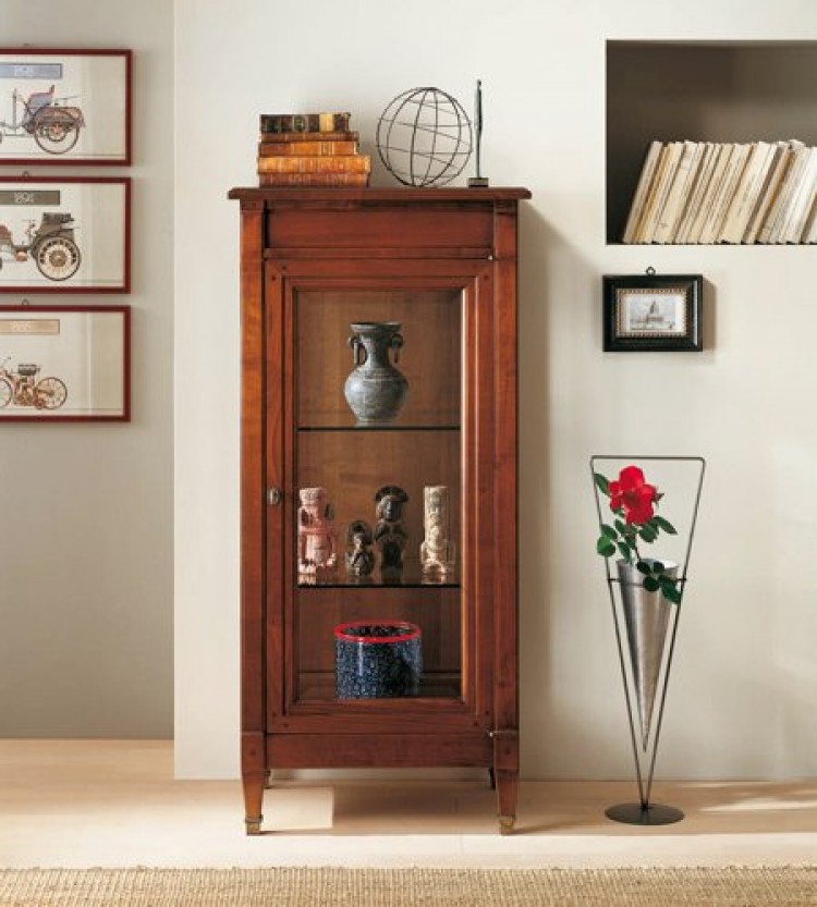Vetrina 1 anta in vetro. Schienale massiccio. Finitura ciliegio.