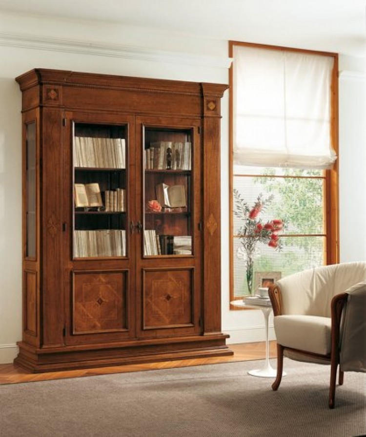 Vetrina 2 ante vetro e legno. Finitura noce.