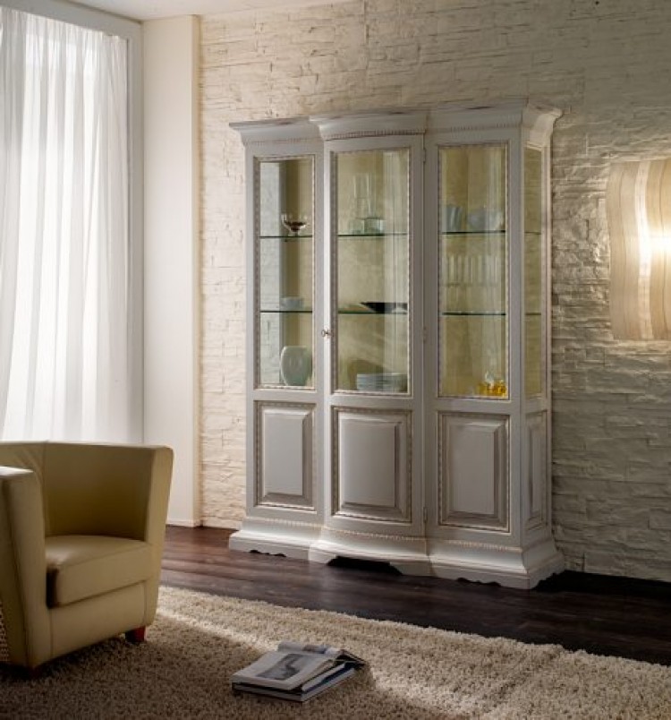 Vetrina 1 anta sagomata in vetro e legno. Finitura noce.