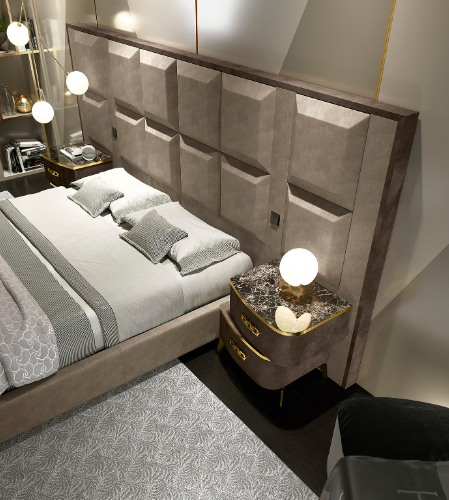 La camera da letto della Collezione Luxury-Meraviglia è tutto ciò che si può desiderare per un ambiente lussuoso e di gran classe. Per non farsi mancare nulla si può optare per la scelta di elementi raffinati e fuori dalle righe. La camera da letto Luxury è pensata per tutti coloro che vogliono arredare un ambiente seguendo uno stile super elegante. Materiali pregiati si intrecciano con decorazioni in grado di distinguersi rispetto a qualsiasi altra collezione da notte.