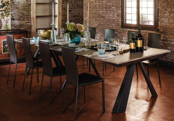 Consolle allungabile con base in acciaio verniciato goffrato titanio (GFM11), bianco (GFM71), graphite (GFM69) o inox satinato. Piano e prolunghe in laminato bianco climb (LM02), ossido grigio (LM06), noce (LM05), cemento (LM07), grigio Londra Fenix (LM21) o castoro Ottawa Fenix (LM22). Inclusa borsa porta prolunghe.