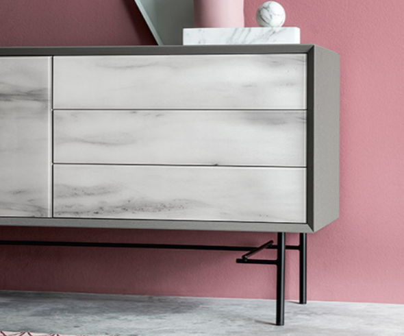 La madia Forty Five si veste di un look ipermoderno e distintivo quando il My Glass passa dal top al frontale.