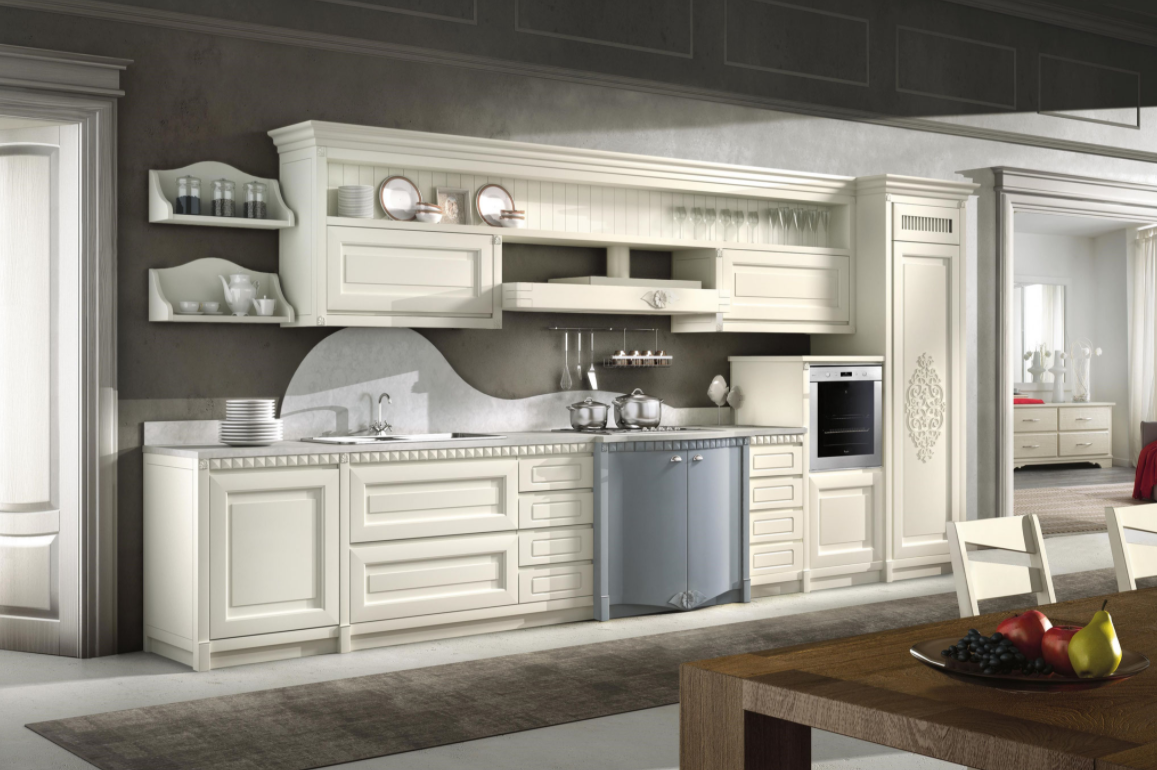 La versione Country è prodotta in legno massello laccato. Lâanta è composta dal telaio semplice con pannello bugnato. La novità di questa versione è lâapertura a gola di ante e cassetti, senza lâutilizzo della maniglia. Ciò permette di realizzare una composizione esteticamente semplice ed elegante, ma allo stesso tempo funzionale ed innovativa.