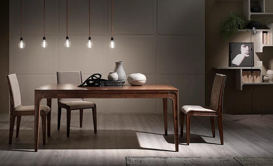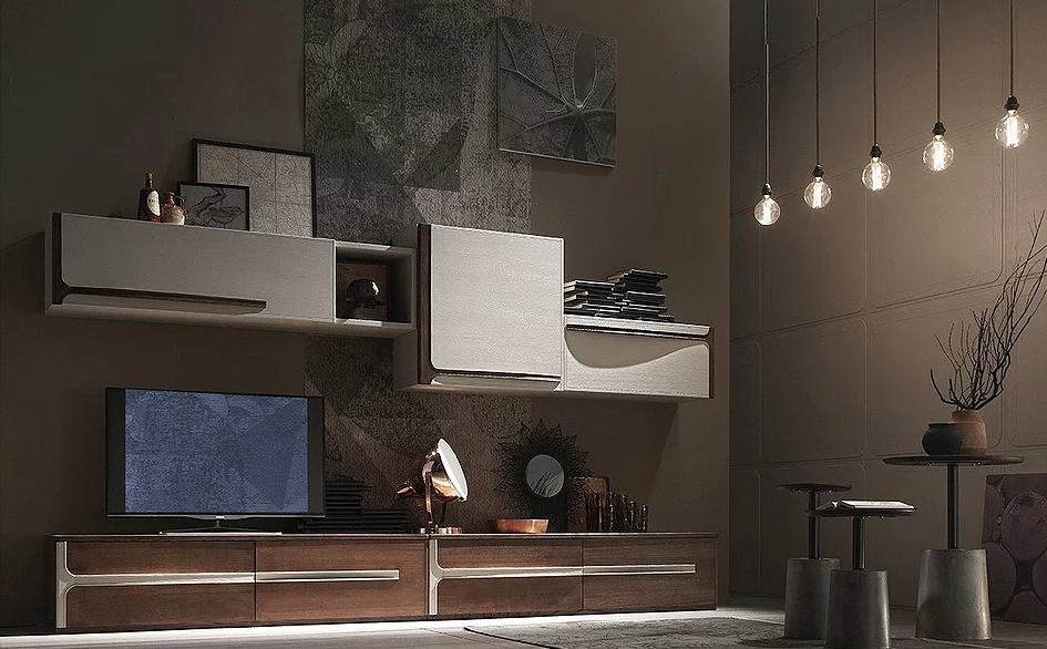 Una collezione dal design contemporaneo, d'ispirazione retro-modern, in cui il legno è protagonista e linee dinamiche disegnano movimenti di grande impatto decorativo.