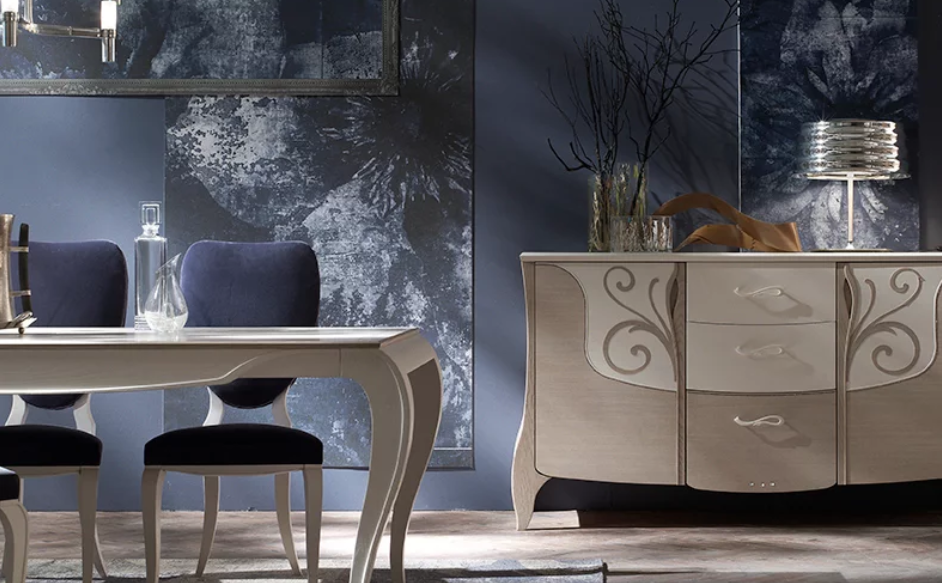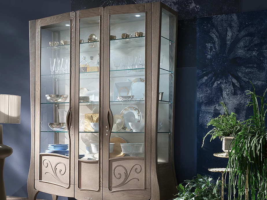 Il ramoscello diventa elemento decorativo, la foglia ispira il disegno della maniglia e il legno rimanda alla natura nella sua essenza: uno stile glamour che nasce da suggestioni e ispirazioni naturali.