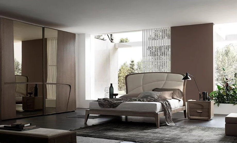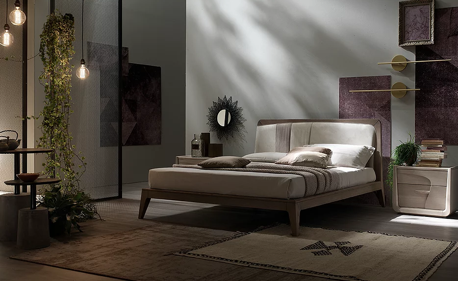 Desi arreda la zona notte con un design delicato e molto femminile. Un disegno elegante e sinuoso caratterizza le ante, i profili e le linee di tutti gli elementi e rende la camera da letto un insieme equilibrato di forme e tonalità.