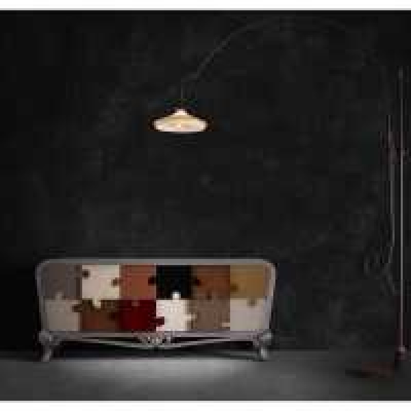 Tre ante apparentemente aggrovigliate che creano un caos di pezzi multicolori che si adattano a diversi stili. Telaio leggermente curvato. Una combinazione sorprendente.