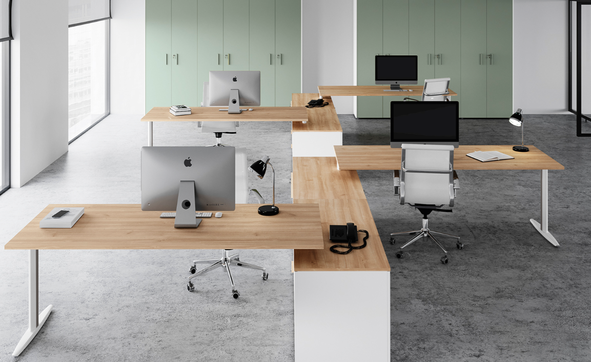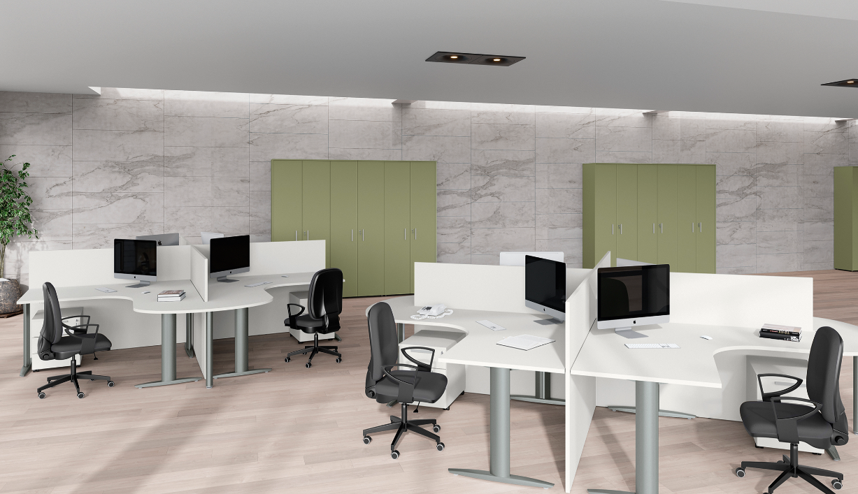 Con TEKO è davvero semplice creare postazioni spaziose e capaci di incentivare la collaborazione: la possibilità di sagomare i piani di lavoro consente di sfruttare al massimo anche gli spazi più ridotti creando postazioni accoglienti e polifunzionali.