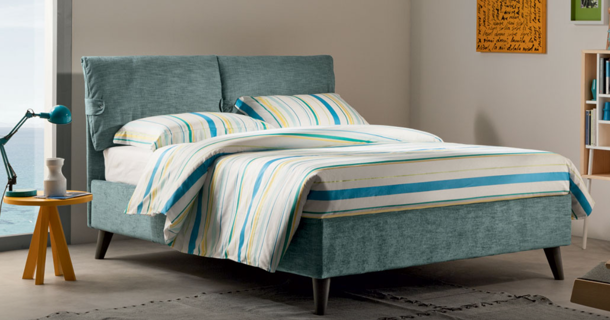 Letto tessile con morbide imbottiture rifinite da bottoni laterali, completamente sfoderabile.