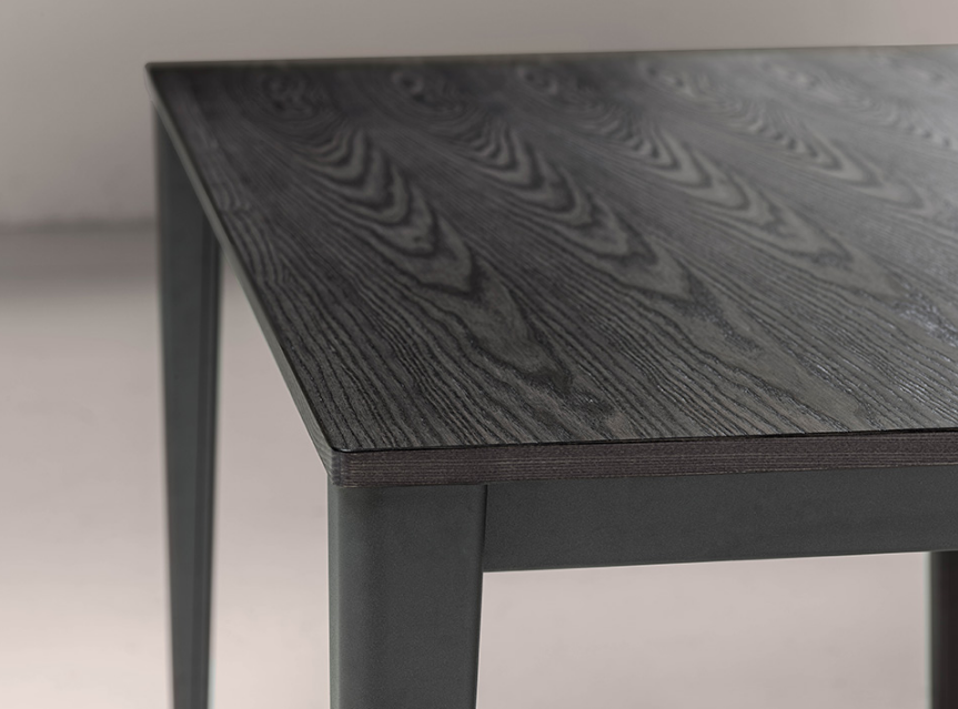 Tavolo impiallacciato allungabile con sistema telescopico.