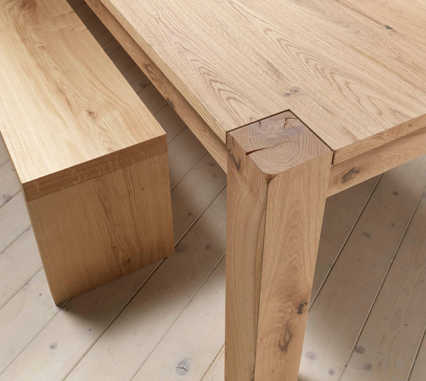 Tavolo impiallacciato Briccola su listellare allungabile con sistema telescopico con guide e cassonetto in legno.