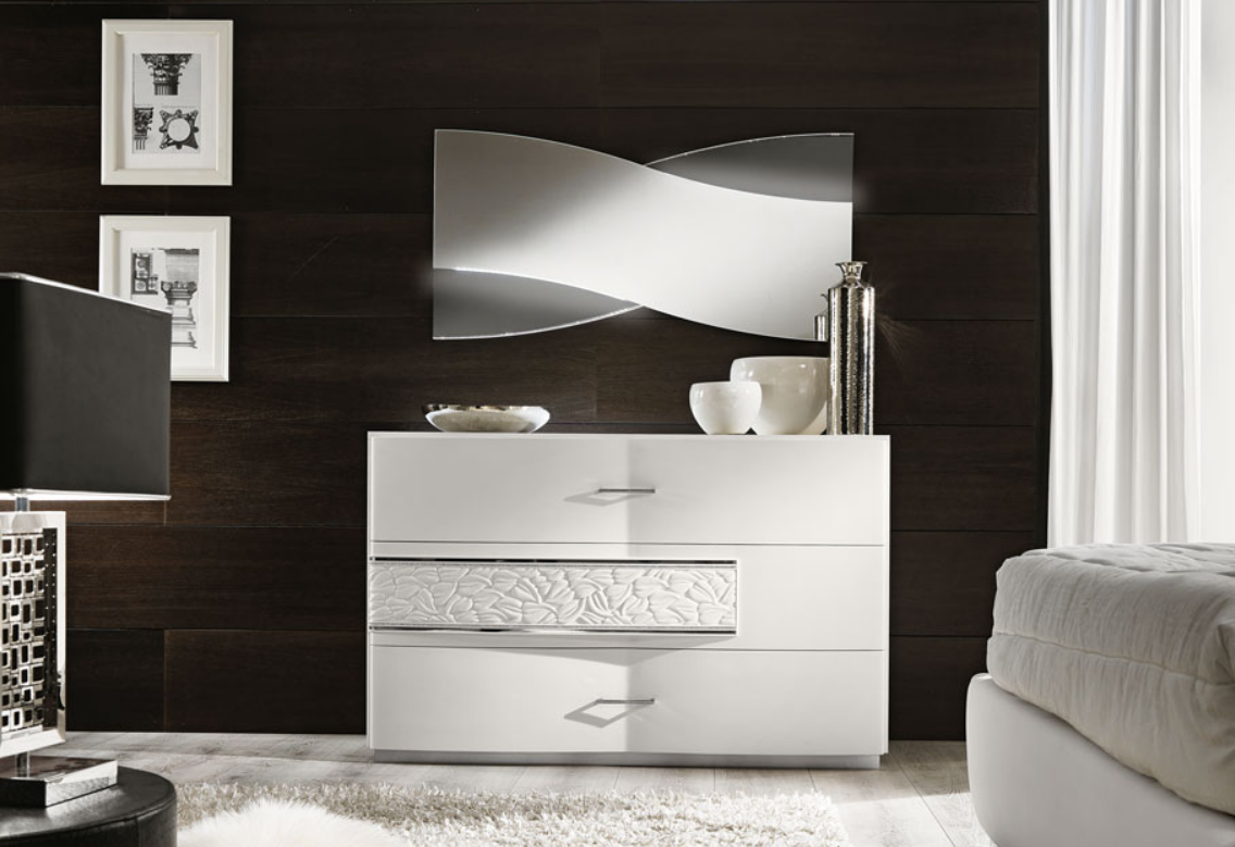 La collezione Nolita Night costituisce massima espressione di design moderno e alla moda. Ogni dettaglio è curato alla perfezione così da fornire un aspetto simmetrico e perfetto di ogni singolo angolo della camera. Il letto con testa imbottita è sicuramente l'elemento predominante sulla scena. Inoltre tutti gli altri complementi d'arredo, dal comodino all'armadio, regalano un'atmosfera da sogno. Il decoro floreale rappresenta il carattere essenziale dell'intera collezione e il design moderno è reso possibile grazie alle finiture e alle linee attente che sanciscono l'essenza di ogni pezzo d'arredo.