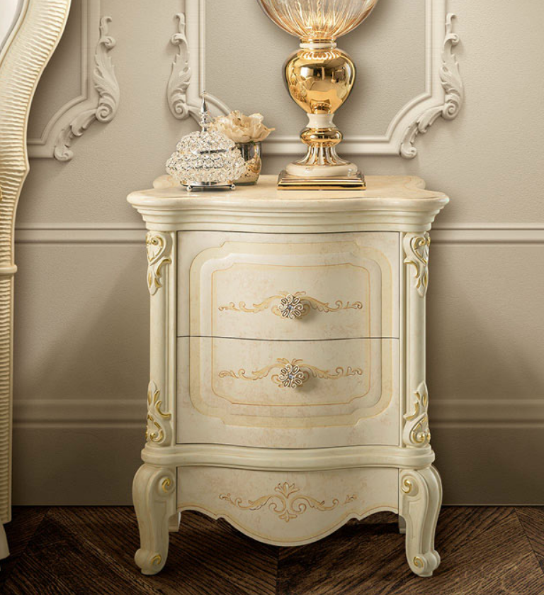 La Collezione Ginevra-Les Romantique Notte è espressione di finezza, romanticismo ed eleganza. Una camera da letto pomposa ma non sopra le righe che vi accompagnerà durante le vostre notti facendovi sentire come re e regine. Ogni pezzo d'arredo è realizzato con massima cura. Ogni dettaglio è studiato alla perfezione così da offrire un mix di colori, finiture e forme assolutamente unico nel suo genere. Scegliendo questa camera da letto sarà impossibile non liberare il lato romantico che si cela in molti di noi. Linee morbide e tondeggianti per letto e comodino rendono