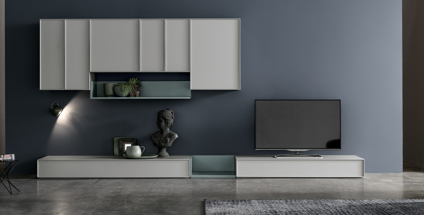 Un living dal design semplice ma ricercato dove la modularità si combina ad elementi a giorno dando vita a una composizione unica e personale.