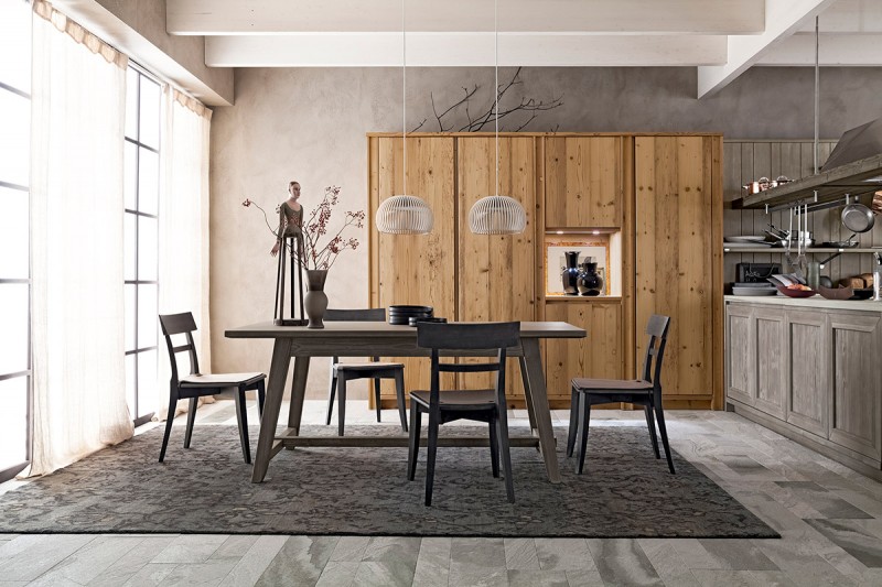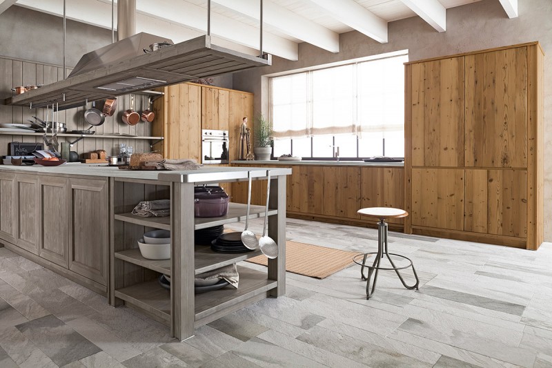 La versione della âMaestraleâ realizzata con assi di legno vecchio, ricavato da demolizioni di vecchi fienili od edifici alpini, dona carattere a questa cucina. Le ante assumono una patina âpreziosaâ, la superficie dei frontali presenta nodi, piccole fessurazioni che conferiscono al tutto un effetto âmagicoâ, semplicemente inimitabile.