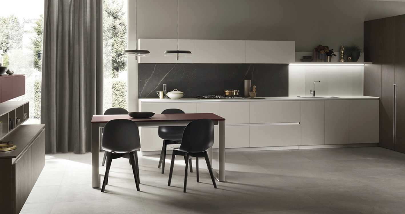 Linee armoniche e seducenti, materiali di tendenza e una componibilità davvero contemporanea, ovvero basi da 80 cm di altezza e zoccolo da 7 cm. Il risultato è la creazione di ambienti dal forte impatto estetico e, contemporaneamente, dal potente senso di ospitalità .