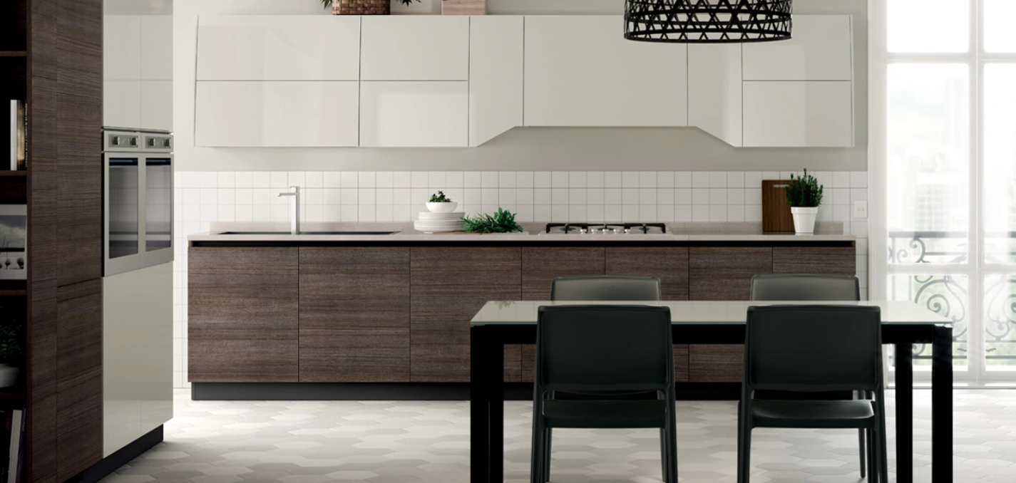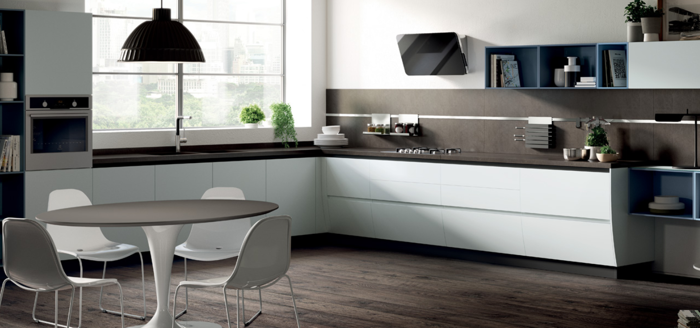 Lâestrema purezza formale dei nuovi elementi introdotti esalta il design estremamente moderno e sofisticato di Flux Swing. La particolare sagomatura delle ante e degli elementi di raccordo, lâesclusivo modello di cappa integrata ad incasso, lâelemento a nastro Slide per fondere cucina e soggiorno, le perfette linee del banco colazione e della penisola rappresentano i must di questa proposta dâarredo unica e innovativa.