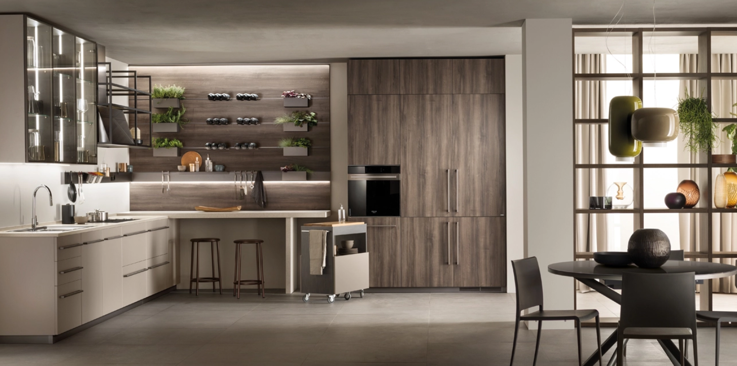 Ma soprattutto una nuova modularità degli arredi, per amplificare la capienza di basi e pensili. Anche gli elettrodomestici a corredo (es. cassetto sottovuoto con nuova funzione di marinatura, lampada riscaldante) esaltano il desiderio e lâamore per la cucina nascosto in ognuno di noi, tecnologia che permette preparazioni âraffinateâ anche per le tavole di ogni giorno.