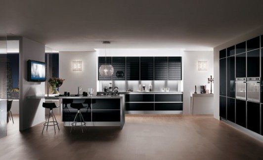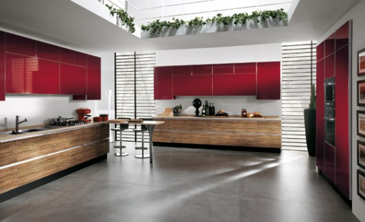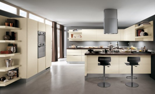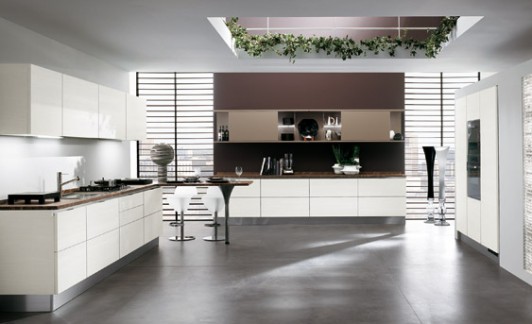 Una cucina con un programma molto articolato di materiali, finiture ed elementi, che rivoluziona il concetto di living. Disponibile con ante in legno con una grande varietà di texture e colori, ante con finiture laccate, in laminato o in vetro.