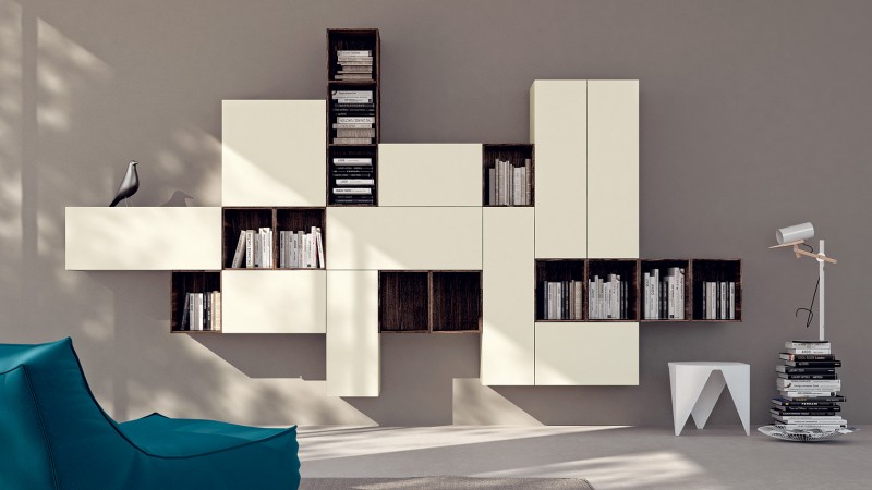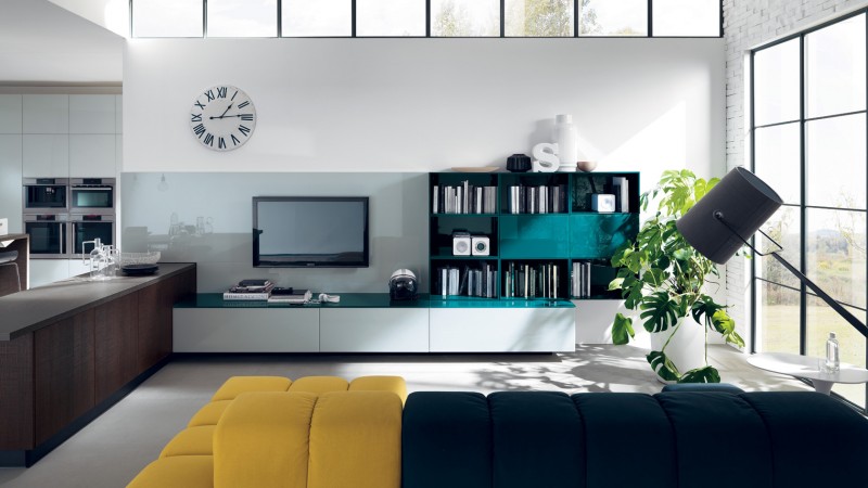 LiberaMente è un progetto flessibile per la razionalizzazione della cucina e la sua integrazione architettonica con il resto della casa; include perciò anche composizioni living che con la cucina vera e propria hanno in comune segni, finiture e colori.