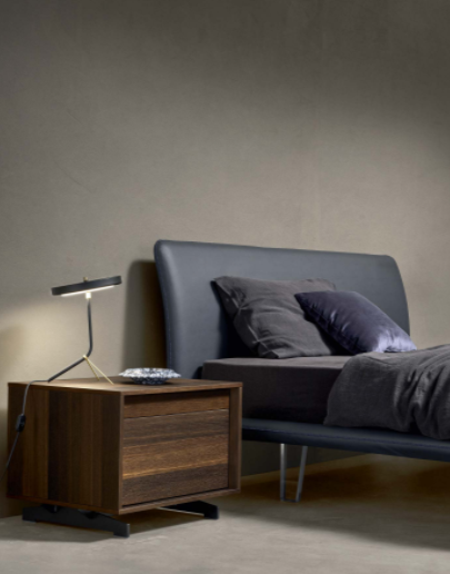 Myo si distingue per le linee leggere e semplici e dal perimetro leggero ed elegante. L’uso del colore abbinato alla particolare cucitura della testata, diventa un gioco cromatico che non sottrae spazio alla bellezza dell’essenzialità.